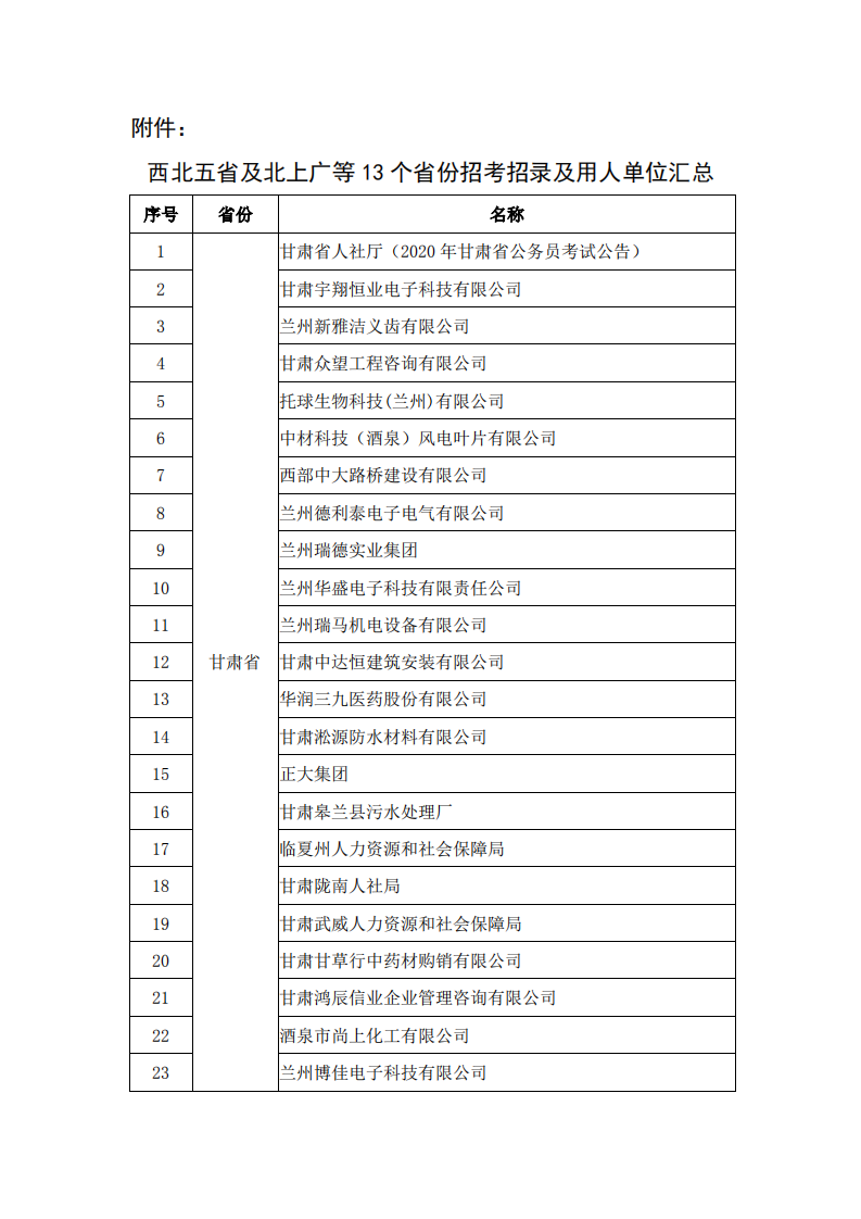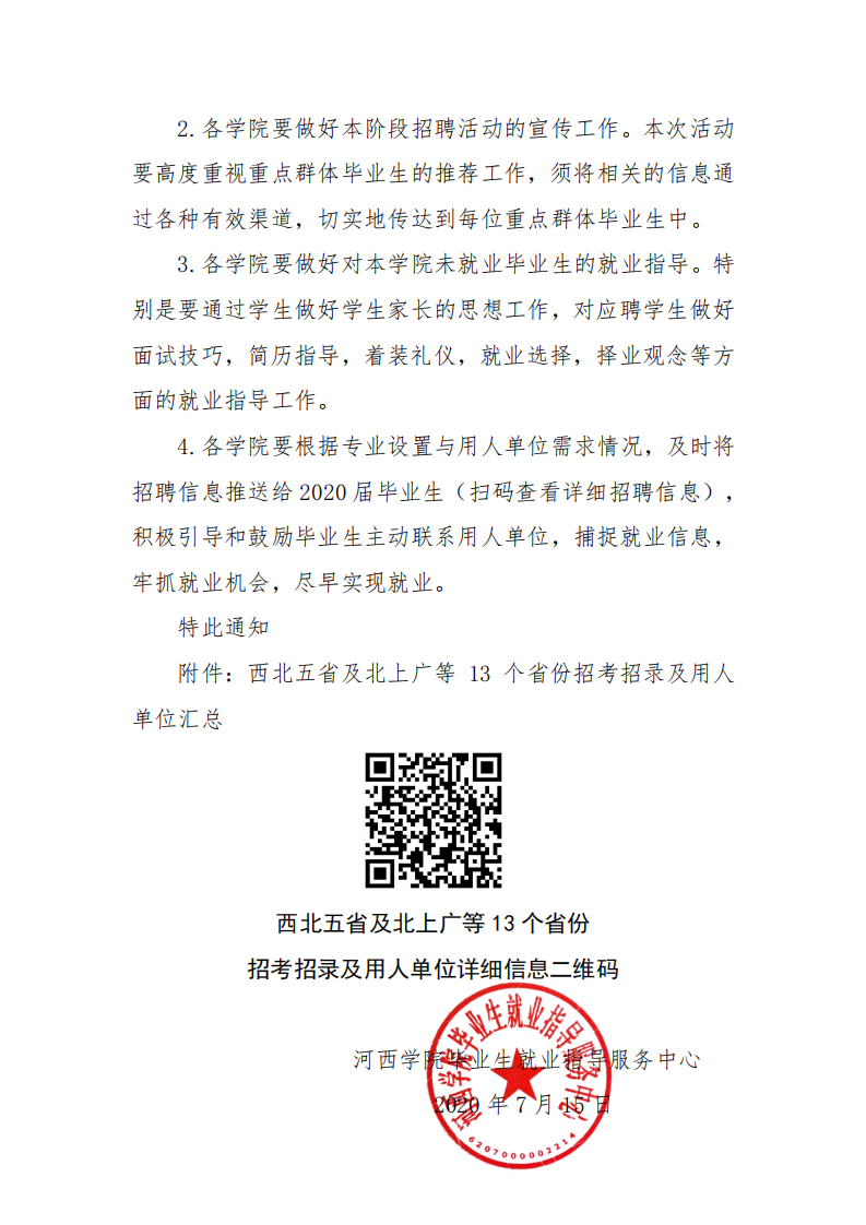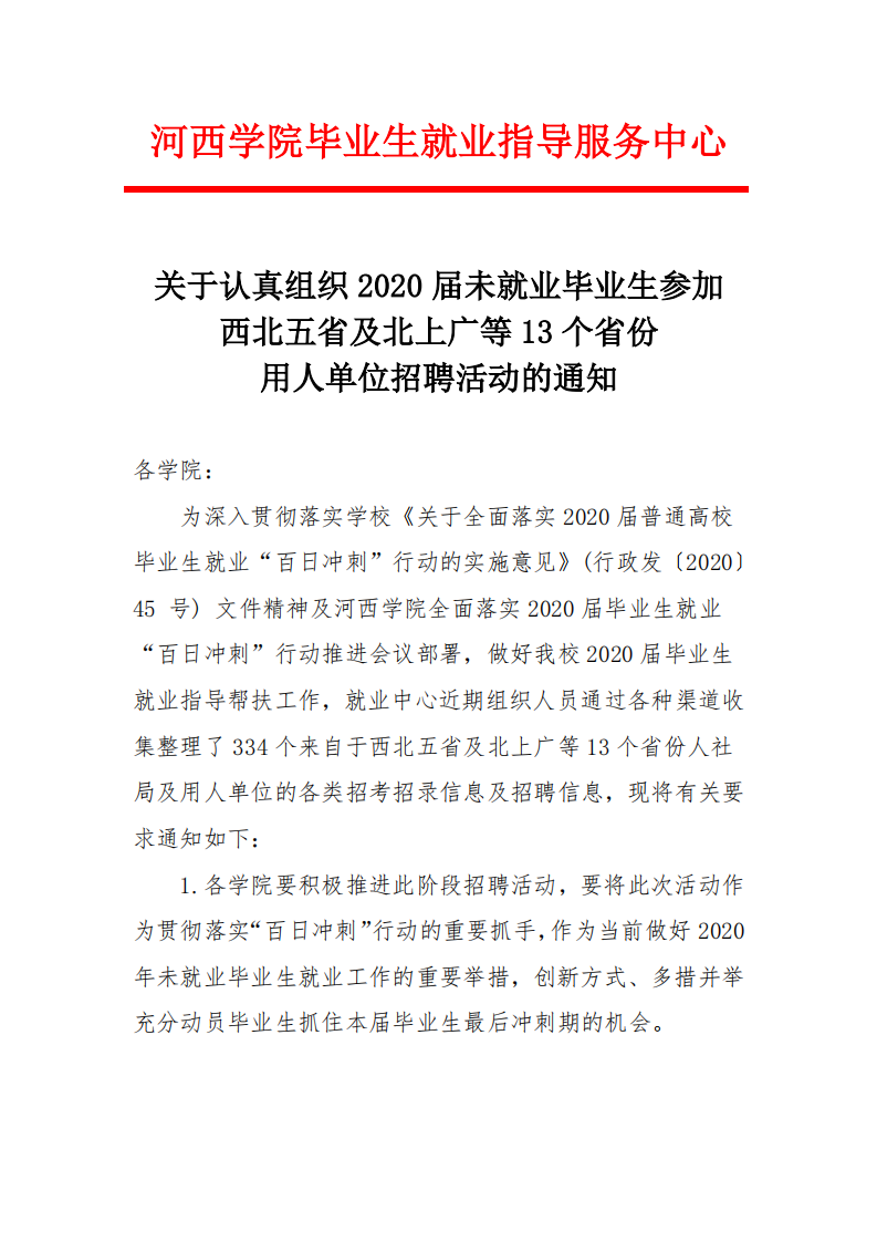 关于认真组织2020届未就业毕业生参加西北五省及北上广等13个省份用人单位招聘活动的通知