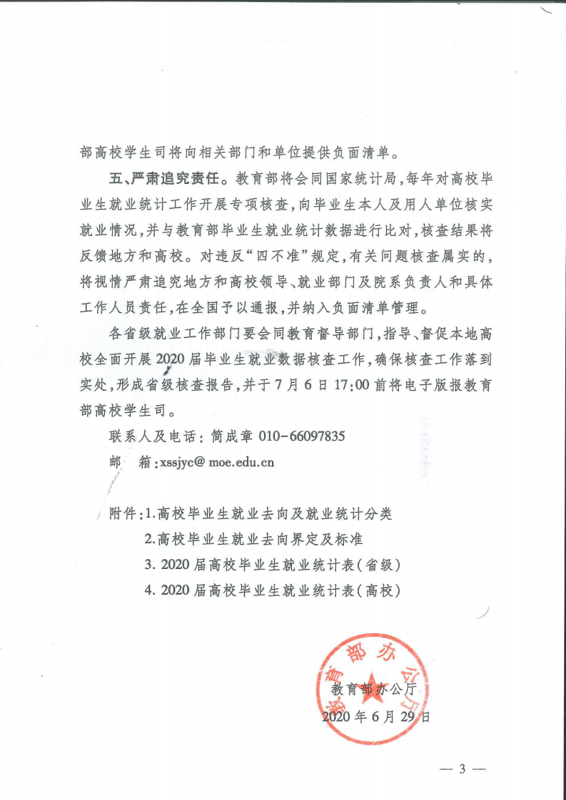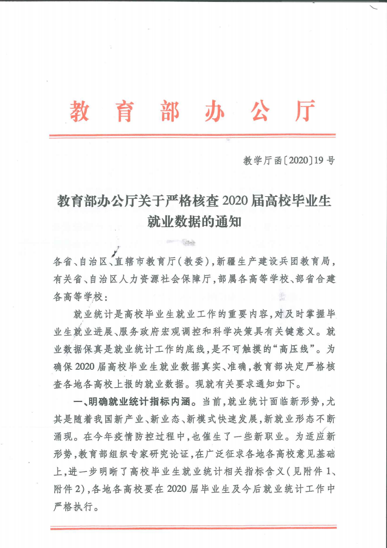 教育部办公厅关于严格核查2020届高校毕业生就业数据的通知