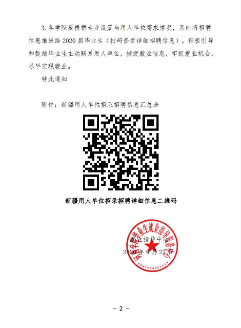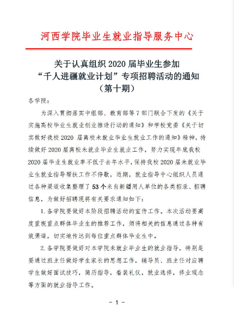 关于认真组织2020届毕业生参加“千人进疆就业计划”专项招聘活动的通知(第十期)