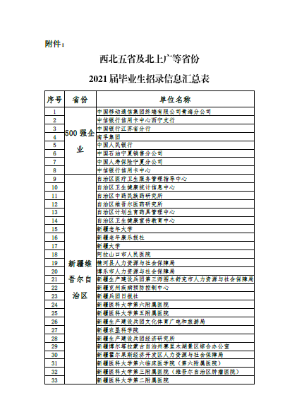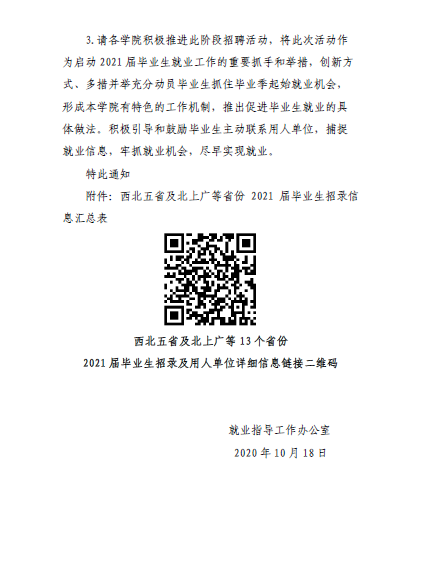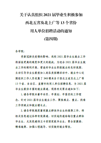 关于认真组织2021届毕业生积极参加西北五省及北上广等13个省份用人单位招聘活动的通知(第四期)